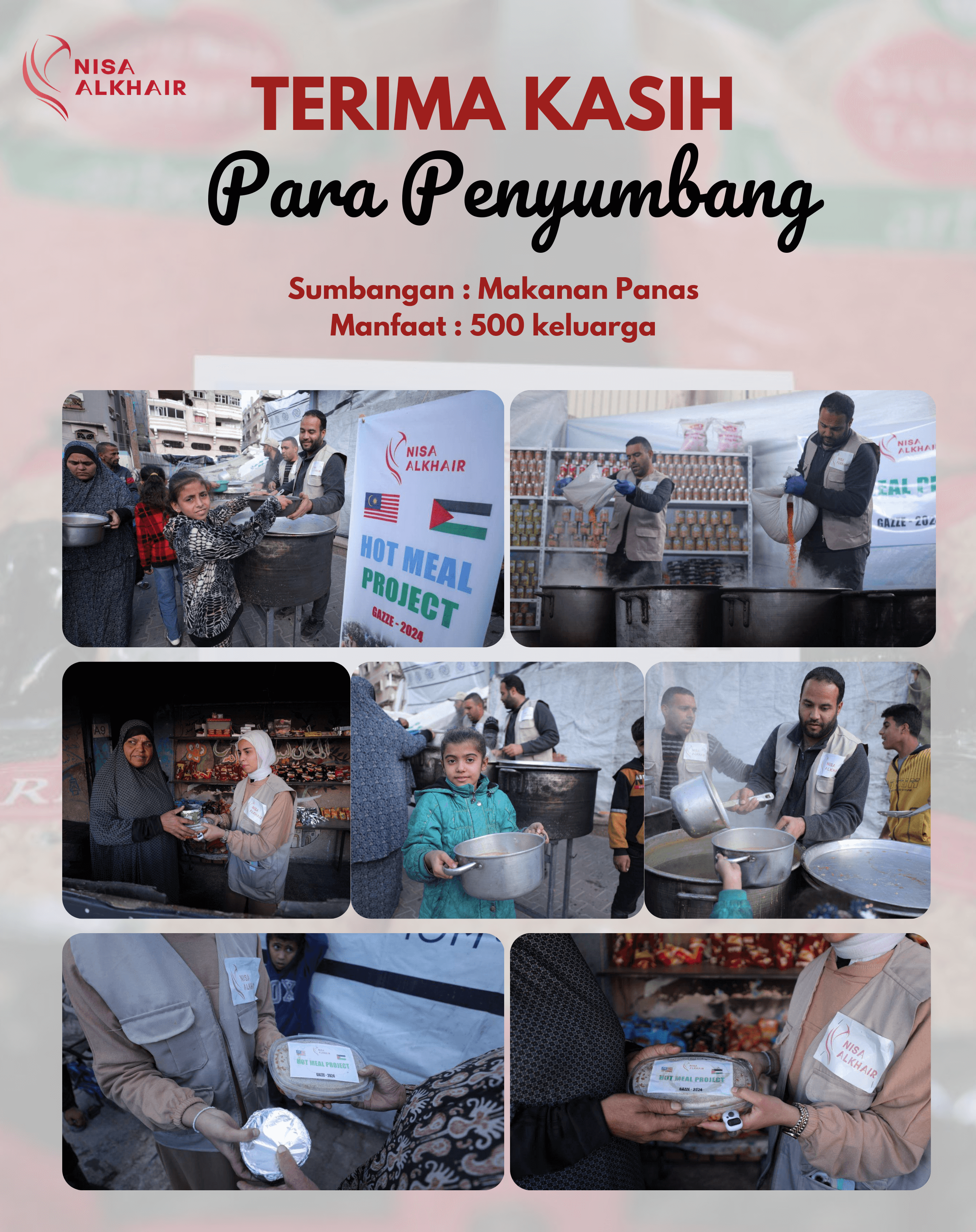 Bersama Nisa Alkhair & Kelab Perwira, bantuan makanan panas Februari 2025 berjaya disalurkan kepada saudara kita di Palestin. Setiap sumbangan anda membawa harapan, setiap suapan memberi kekuatan.